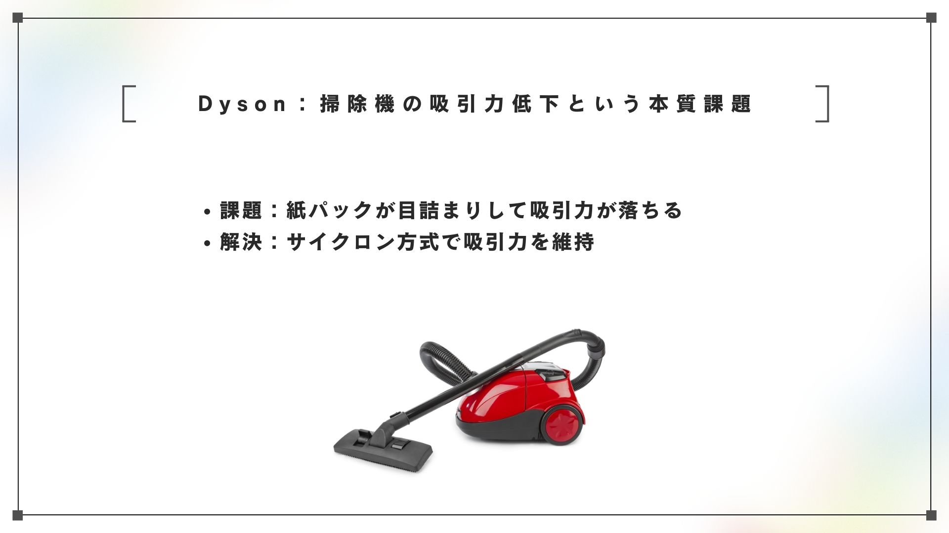 - Dysonは「吸引力が落ちる」という不満を解消し、家事の効率を前進させました。