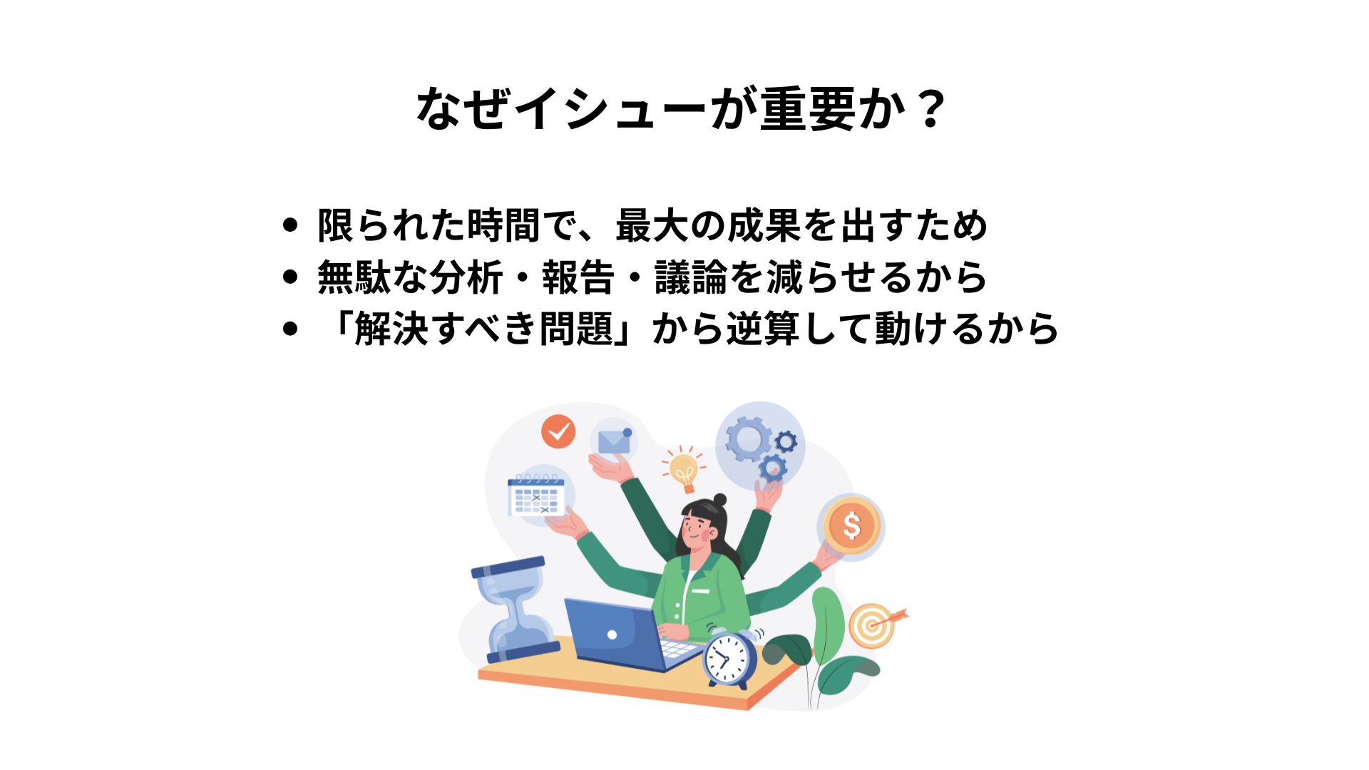 イシューが重要なのは、「限られた時間の中で、最大の成果を出す」ためです。