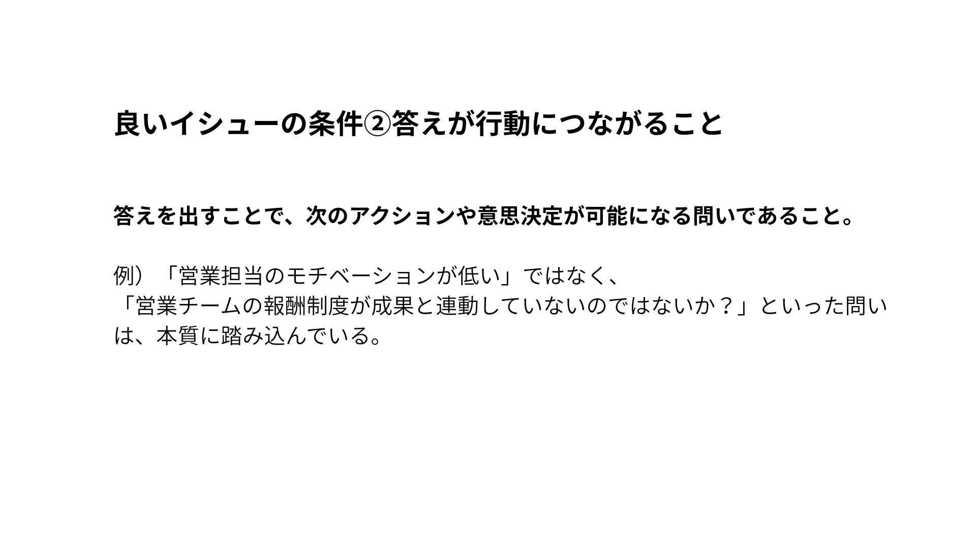 良いイシューの条件②答えが行動につながること