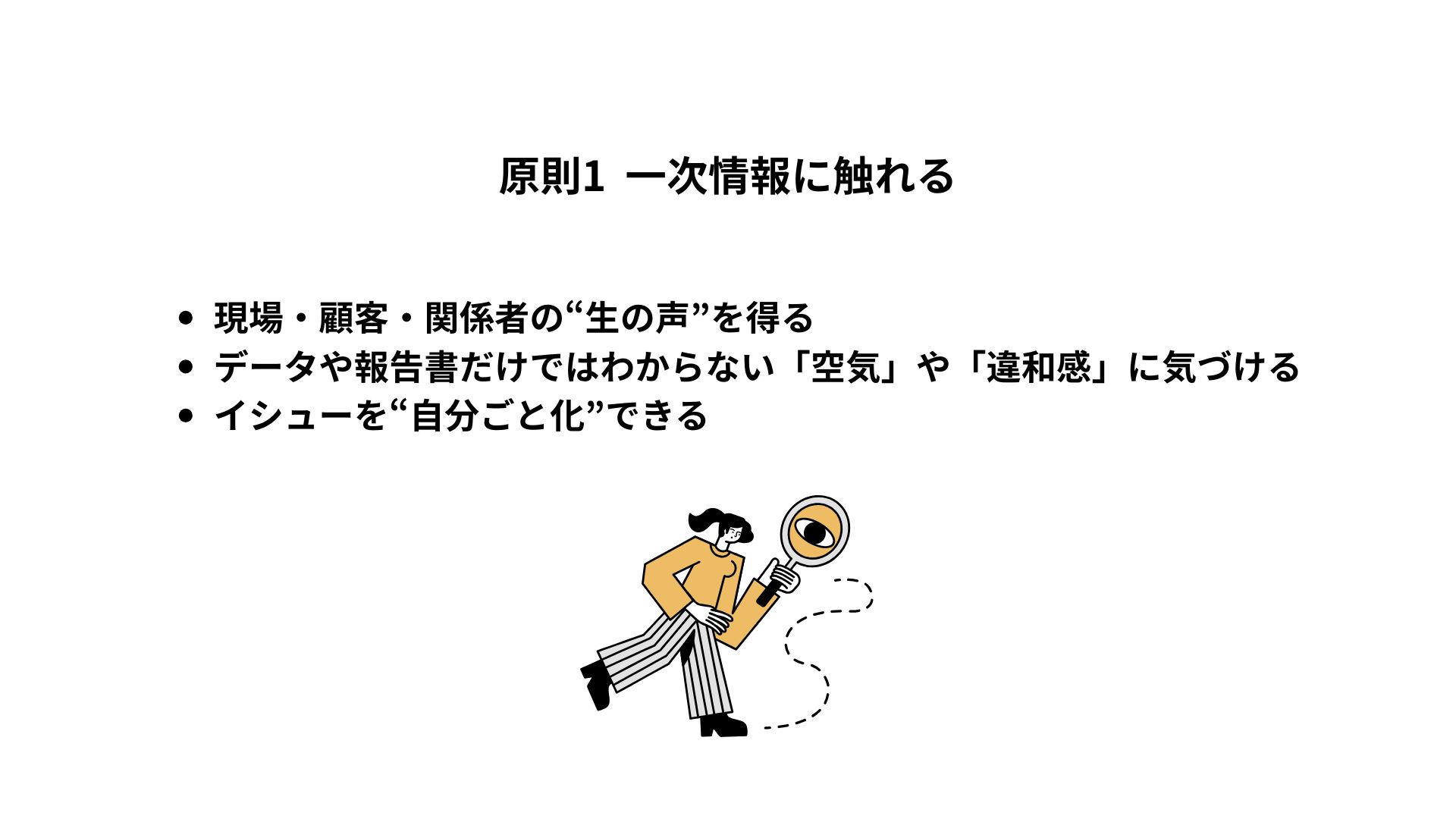 イシューを見つけるための1つ目の原則は、一次情報に触れることです。