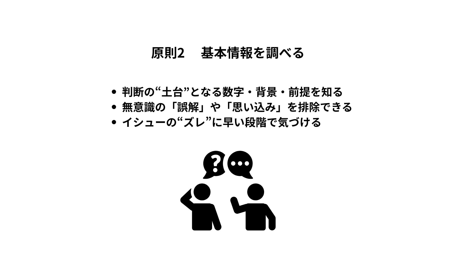 「多分こうじゃないか?」という思い込みで問題設定をすると、イシューそのものがズレてしまうのです。